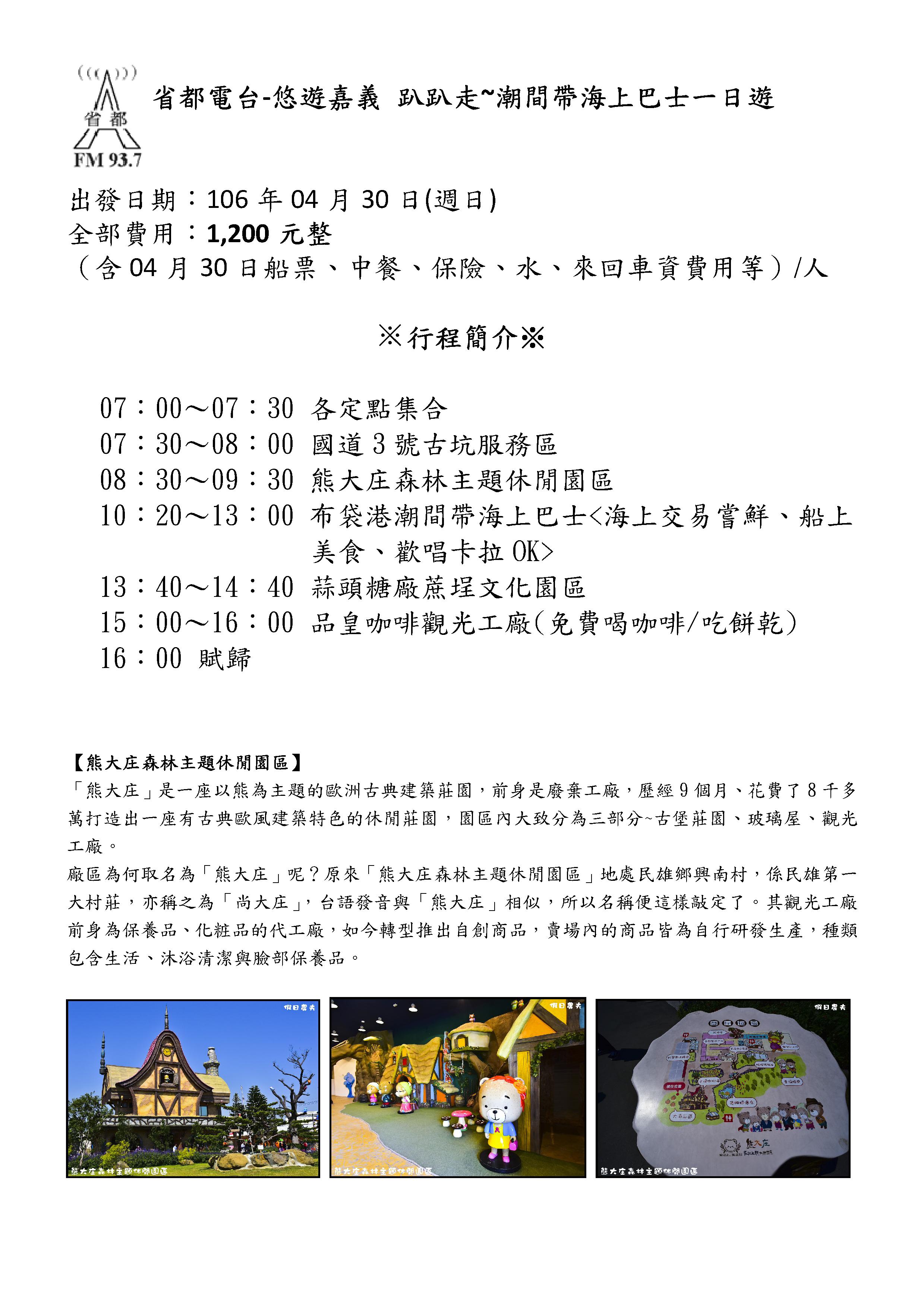 標題: 省都電台21週年慶『悠遊嘉義趴趴走~潮間帶海上巴士1日遊』